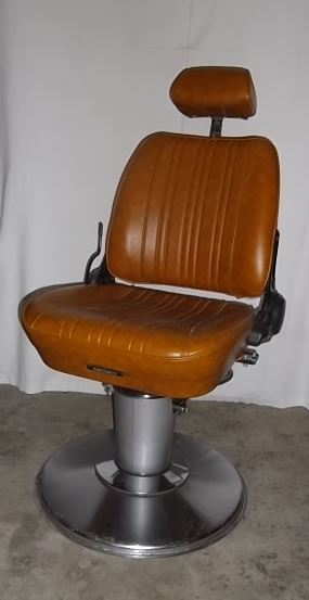 Lot n°26 : Fauteuil Barbier de couleur grise, dossier inclinable, pied hydraulique, sellerie entièrement excellent été, époque 1950/1960.